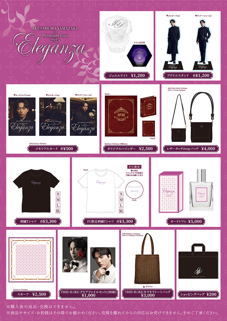 「山崎育三郎 Premium Dinner Show Tour 2025 ~Eleganza~ 」では、会場でのグッズ販売を実施いたします。